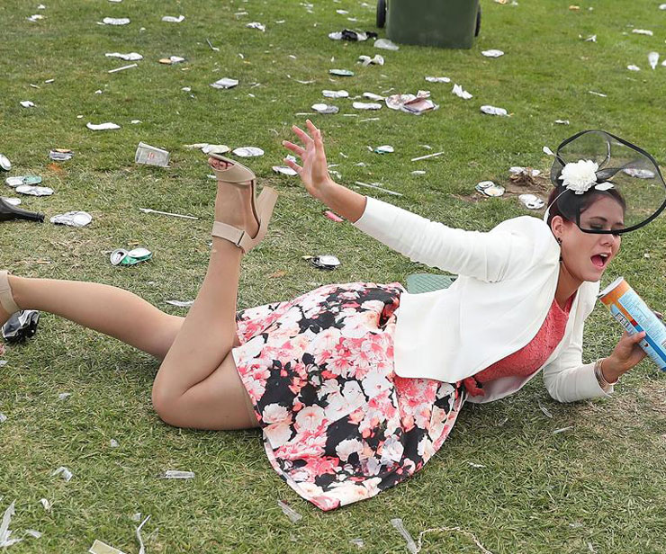 Night time is undoubtedly the highlight of music festivals, however, attendees start flocking to the venue as early as morning. These early birds arrive in advance to soak in the atmosphere and mingle with others before the crowd builds up. Daytime drinking is also a common sight at these events. A certain girl appears to be intoxicated based on her behavior. Who else would leap onto grubby grass wearing a clean attire and use a can of Pringles as an impromptu microphone? Her head accessory gives one the impression that she might be at a wedding, rather than a music festival.